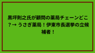 ニュース 黒坪則之氏が顧問の薬局チェーンどこ?→ うさぎ薬局!伊東市長選挙の立候補者!