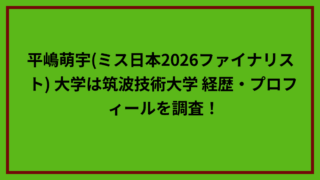 ミス日本2026ファイナリストとして注目を集めている平嶋萌宇(ひらしま・もね)さん。大学はどこなのか、筑波技術大学に在学しているという情報は本当なのか、またこれまでの経歴やプロフィールも気になるところです。この記事では、公式発表やSNS、報...