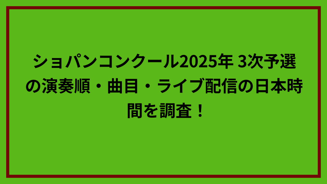 ショパンコンクール2025・第3次予選(Stage III)は2025年10月13〜16日(ワルシャワ)に実施され、公式ライブはフレデリック・ショパン研究所のYouTubeチャンネル等で配信されます。