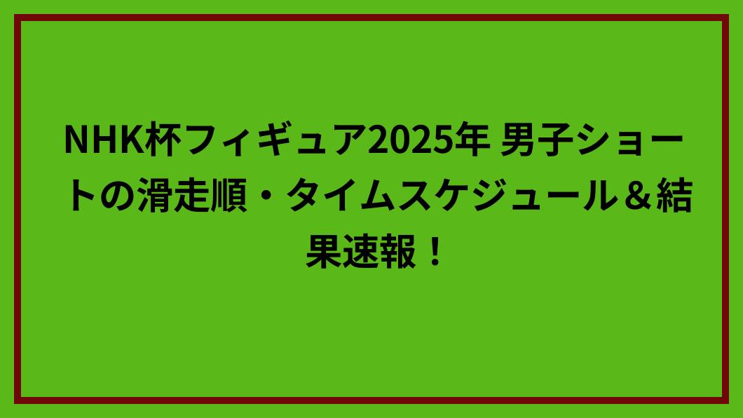 「NHK杯フィギュア2025 男子ショート」の滑走順・タイムスケジュール&結果速報をお届けします。