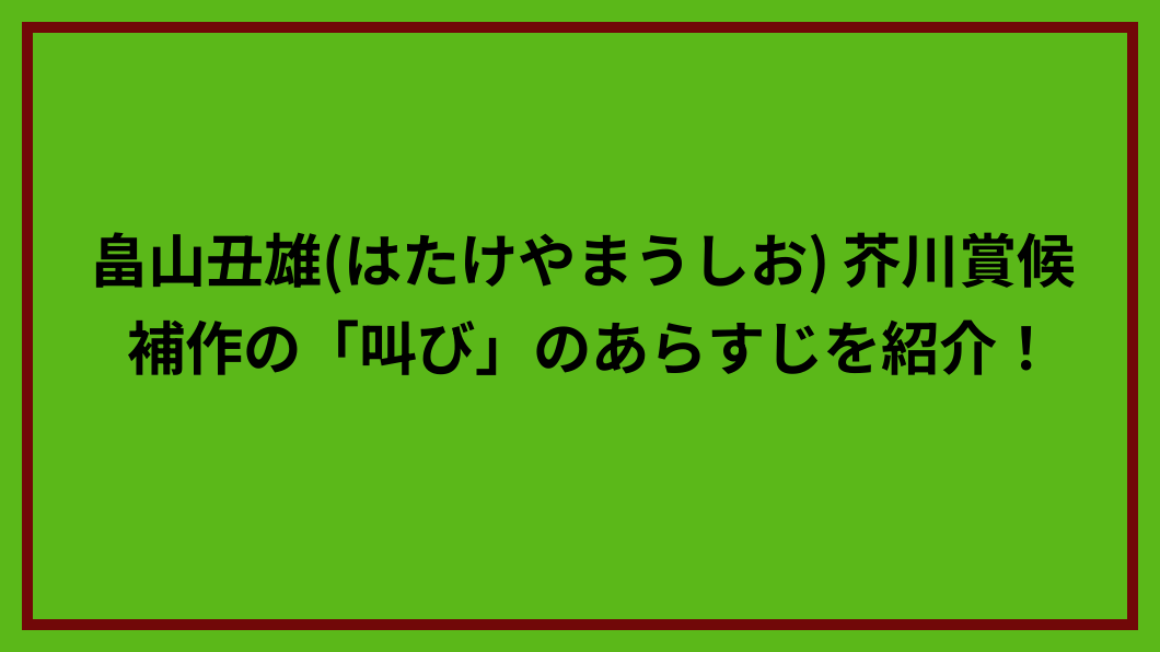 作品概要:畠山丑雄(はたけやまうしお)芥川賞候補作『叫び』のあらすじ紹介