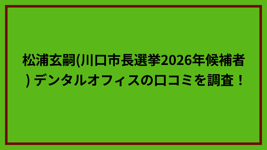 川口市長選挙2026に立候補予定とされる松浦玄嗣氏について、「デンタルオフィスの口コミが気になる」「どこの歯科医院を運営しているのか知りたい」と検索する人が増えています。