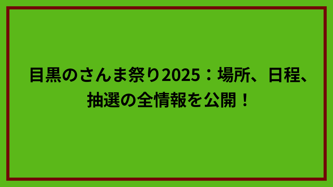 東京の秋を代表する恒例行事「目黒のさんま祭り」。2025年も開催が予定され、多くの人々が炭火で焼かれた新鮮なさんまを楽しみにしています。本記事では、開催日程や場所、アクセス方法に加え、事前抽選申し込みや当日整理券の入手方法など、参加に必要な最新情報を詳しく解説します。