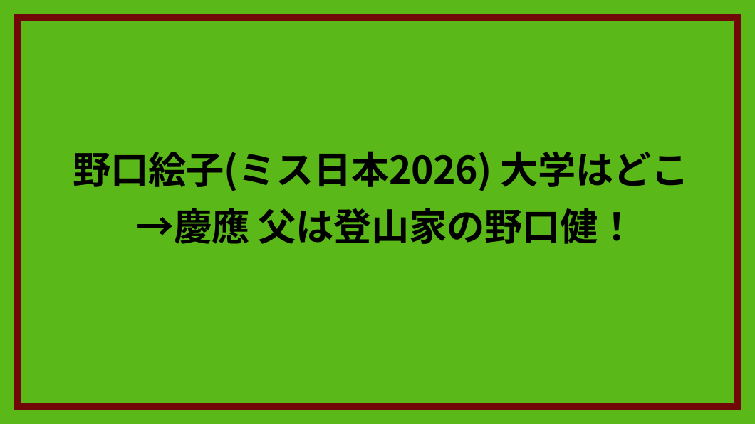 野口絵子(ミス日本2026)基本プロフィール|大学はどこ?慶應在学の噂を検証
