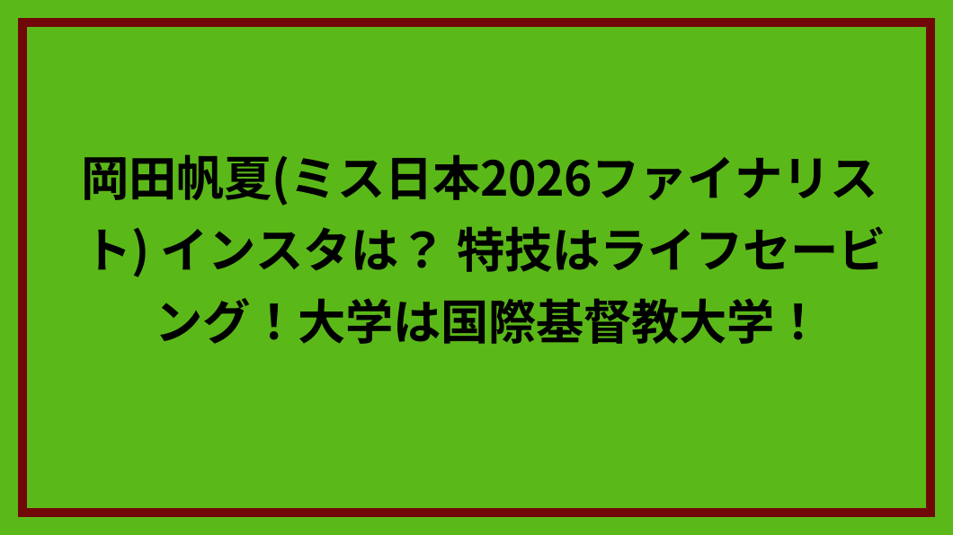 岡田帆夏さんはミス日本2026ファイナリストの一人で、国際基督教大学に在学中の大学生です。年齢や出身地などの詳細は、公式発表を中心に確認されています。