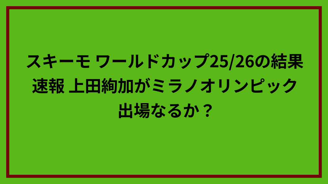 本記事では、スキーモワールドカップ25/26の最新の結果速報と、上田絢加選手がミラノオリンピック出場を果たすための道のりについて詳しく解説します。