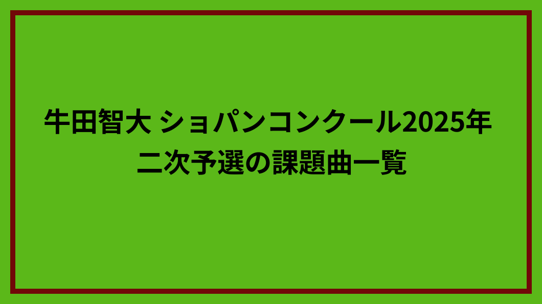 以下は牛田智大が二次予選で演奏するショパン作品の一覧(演奏順は当日変動する可能性があります)。