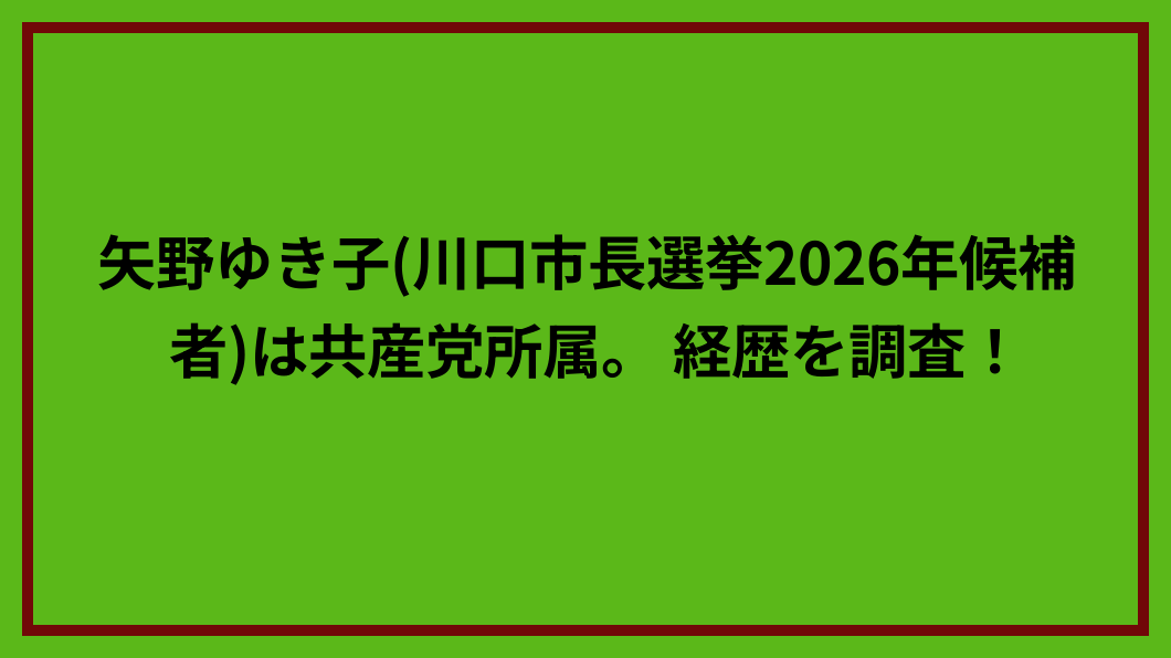 2026年に行われる川口市長選挙で注目を集めているのが、日本共産党所属の矢野ゆき子氏です。